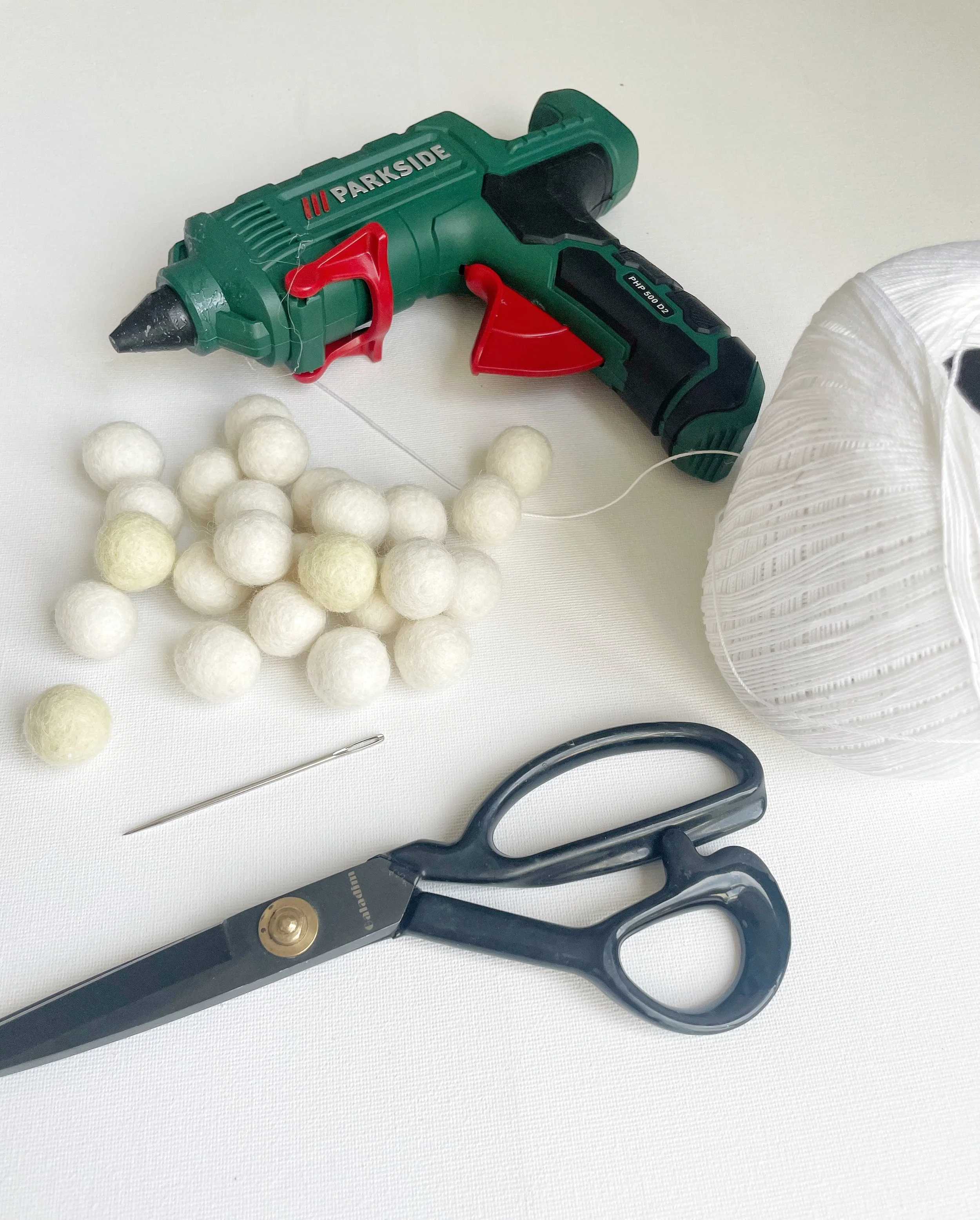 For my garland, I went with soft yellow and ivory felt balls for a sunny, gentle look. But you can let your imagination take the lead, think soft pastels for a dreamy vibe, bold brights for a fun splash, or calming neutrals for a cosy feel.