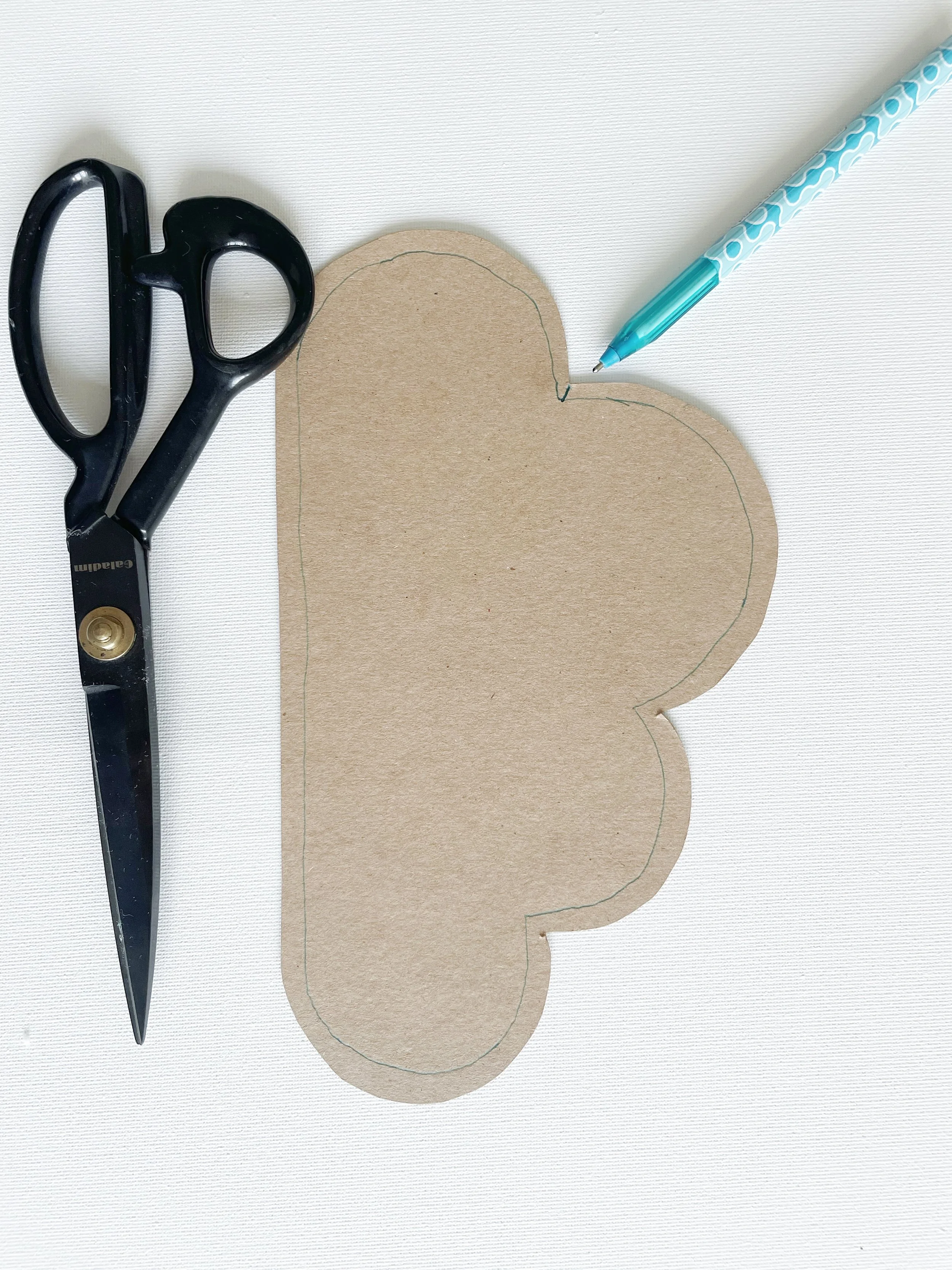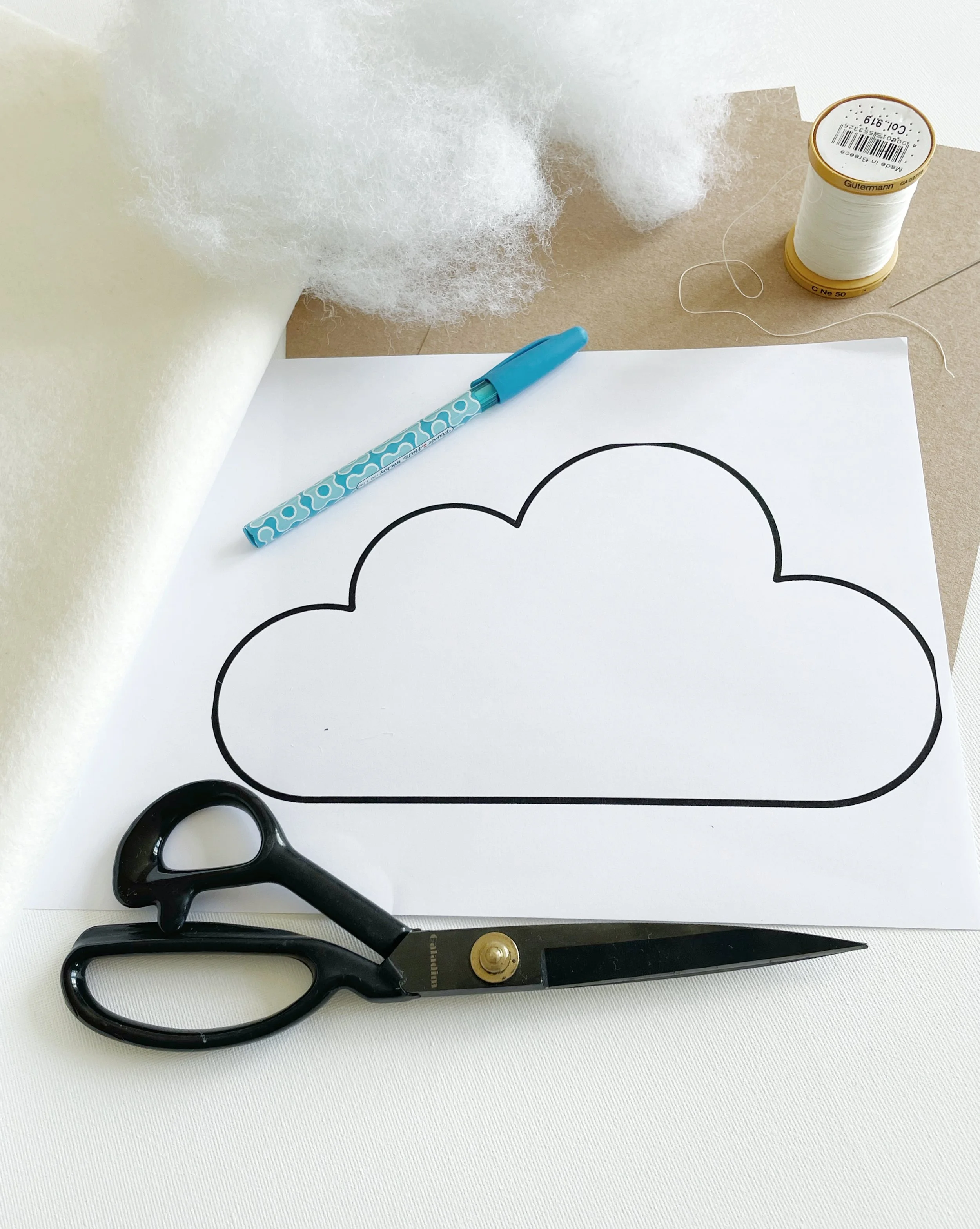 Place the cloud template on the top layer of the wool felt. Use your pen to draw around the template.