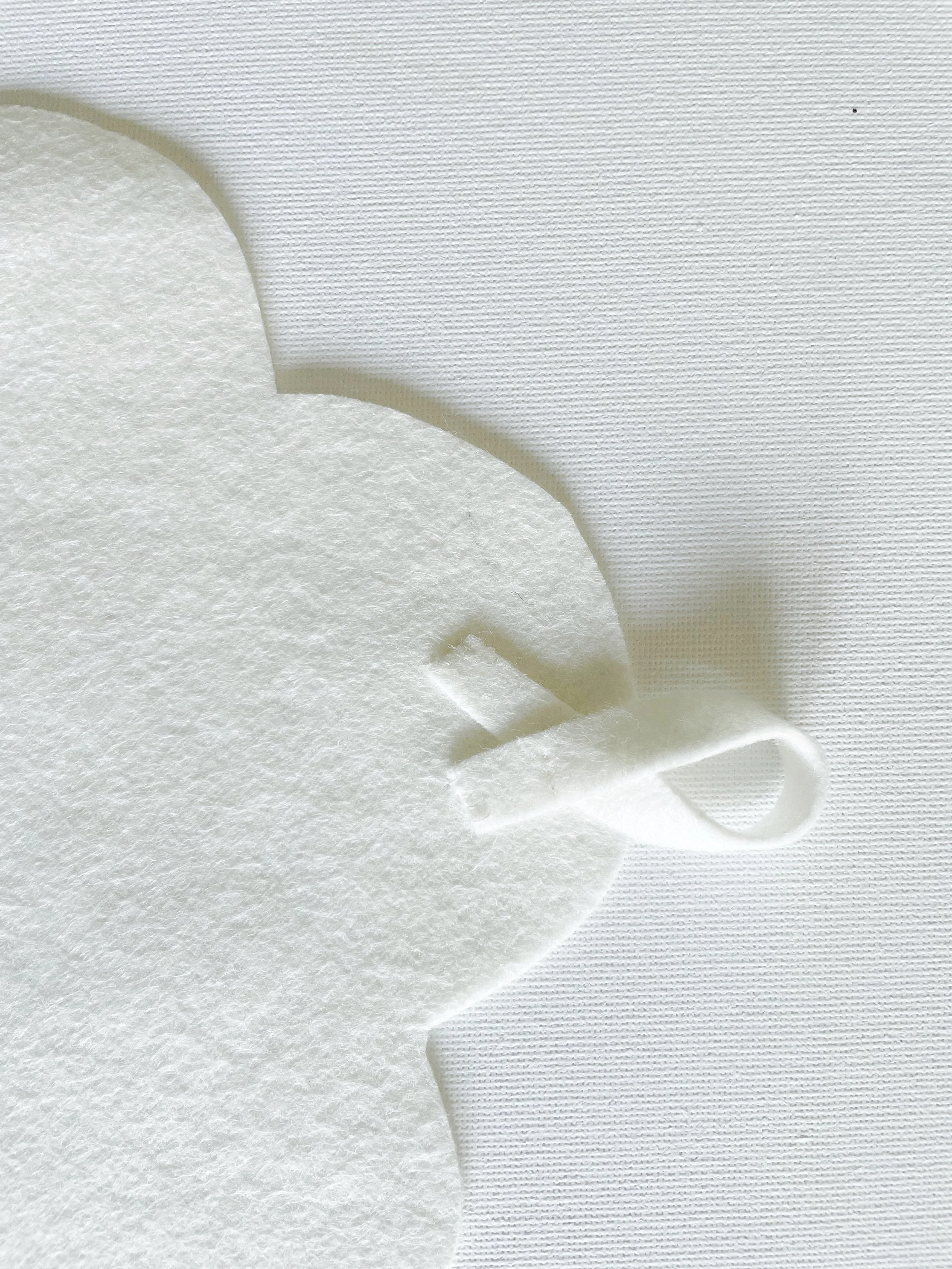 To hang your clouds onto a wall you can buy little loops to sew into your fabric, but I’m going to show you a super easy way to make one using leftover wool felt.