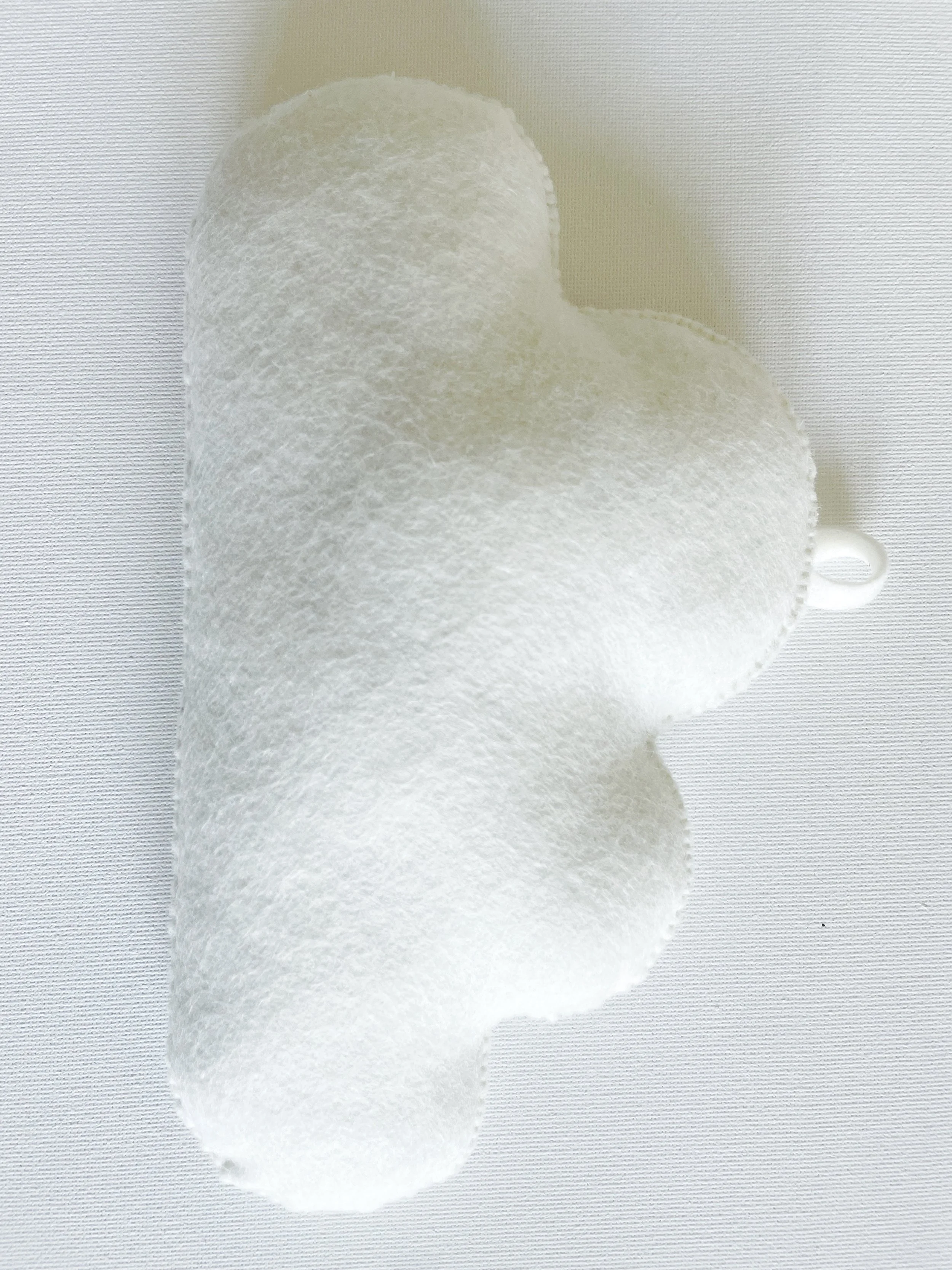Keep adding small amounts of stuffing until your cloud feels soft and squishy, but not overstuffed. You're aiming for a soft, plushy feel, just enough to give it a plump fullness without stretching or damaging the stitches.
