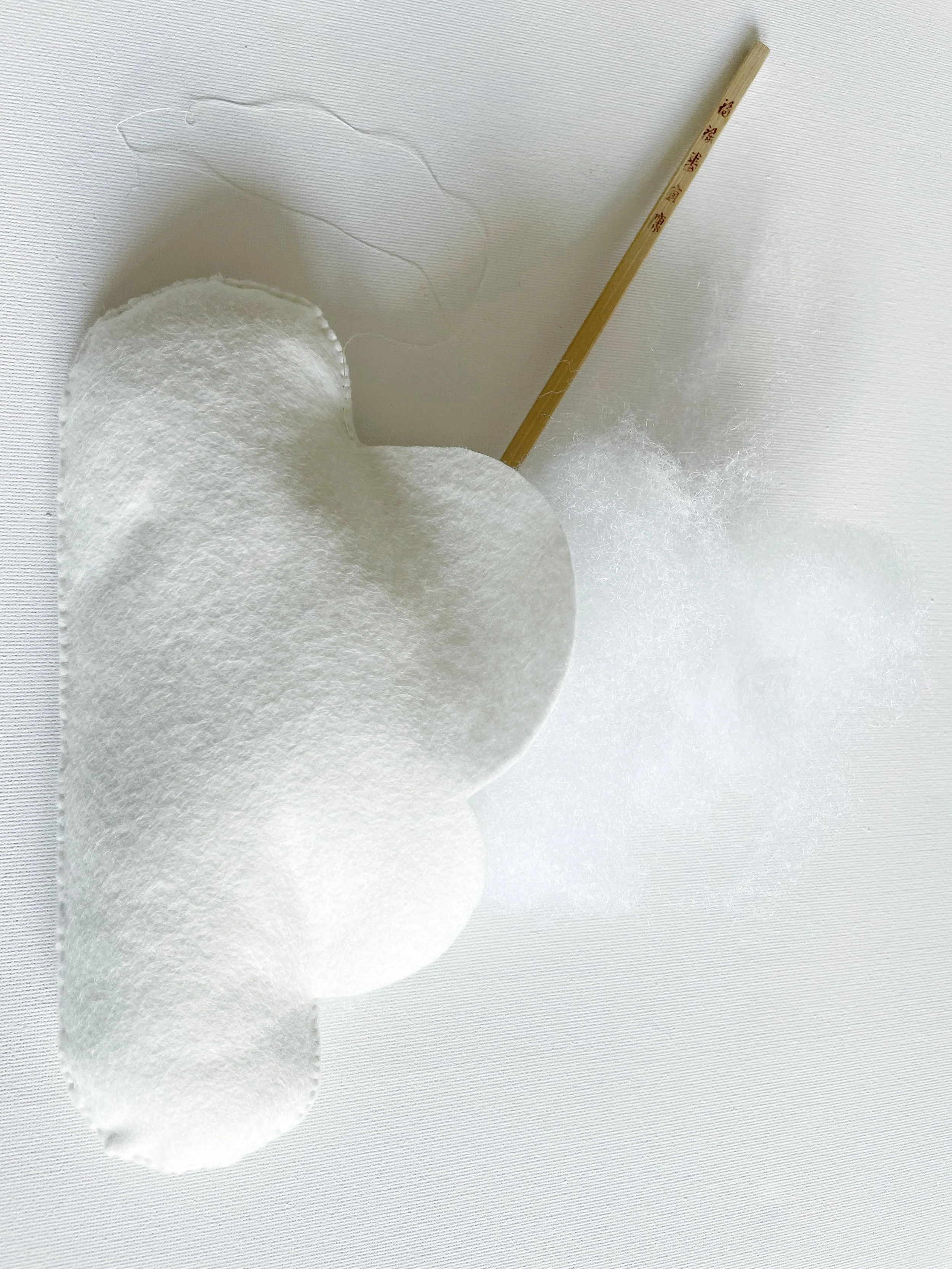 Take a small amount of stuffing and using a wooden chopstick (or something similar) gently push the stuffing into the gap at the top of the cloud and down into the edges of the cloud where you’ve already sewn. Take care, being too forceful can loosen or damage your stitches.
