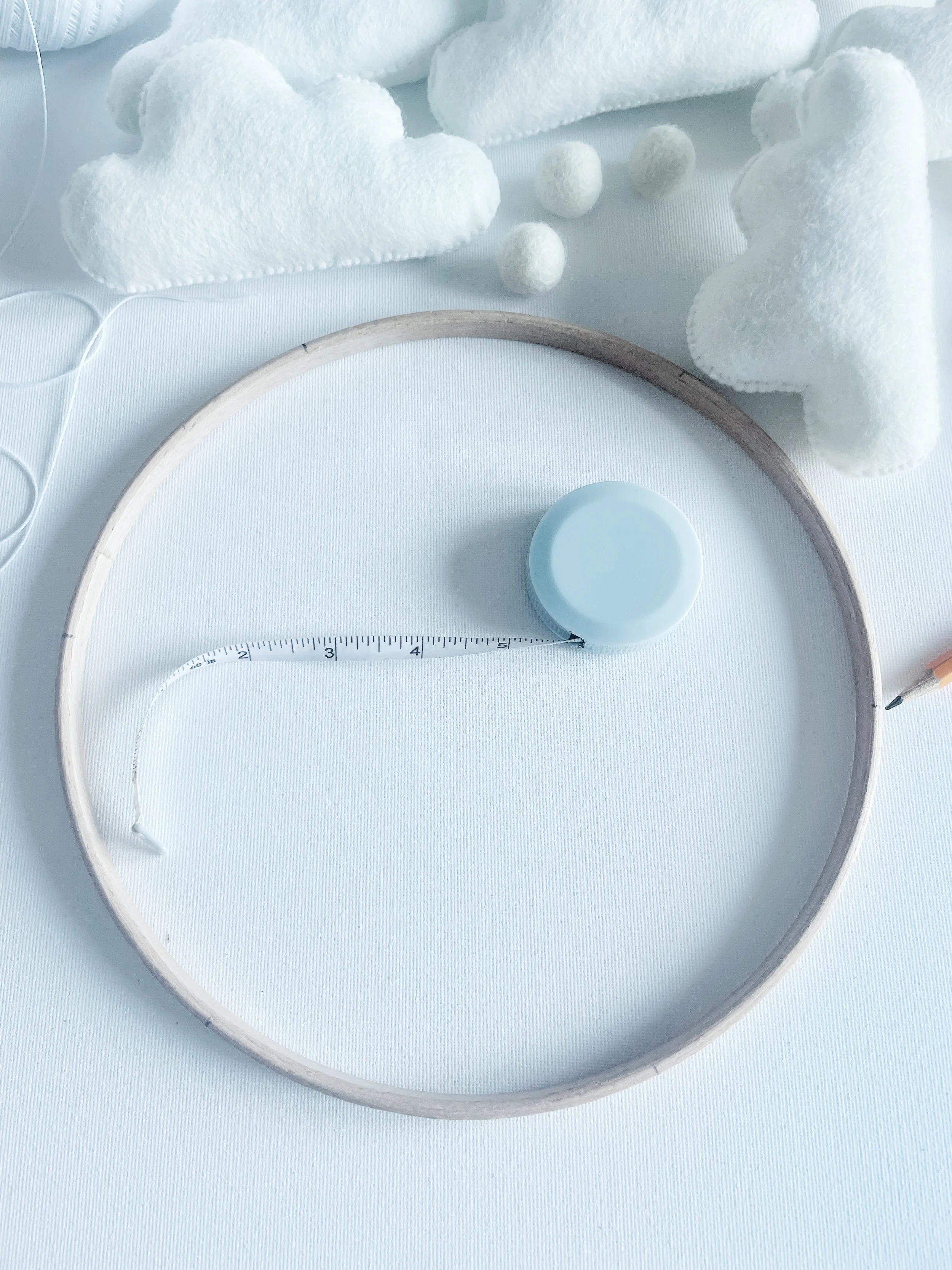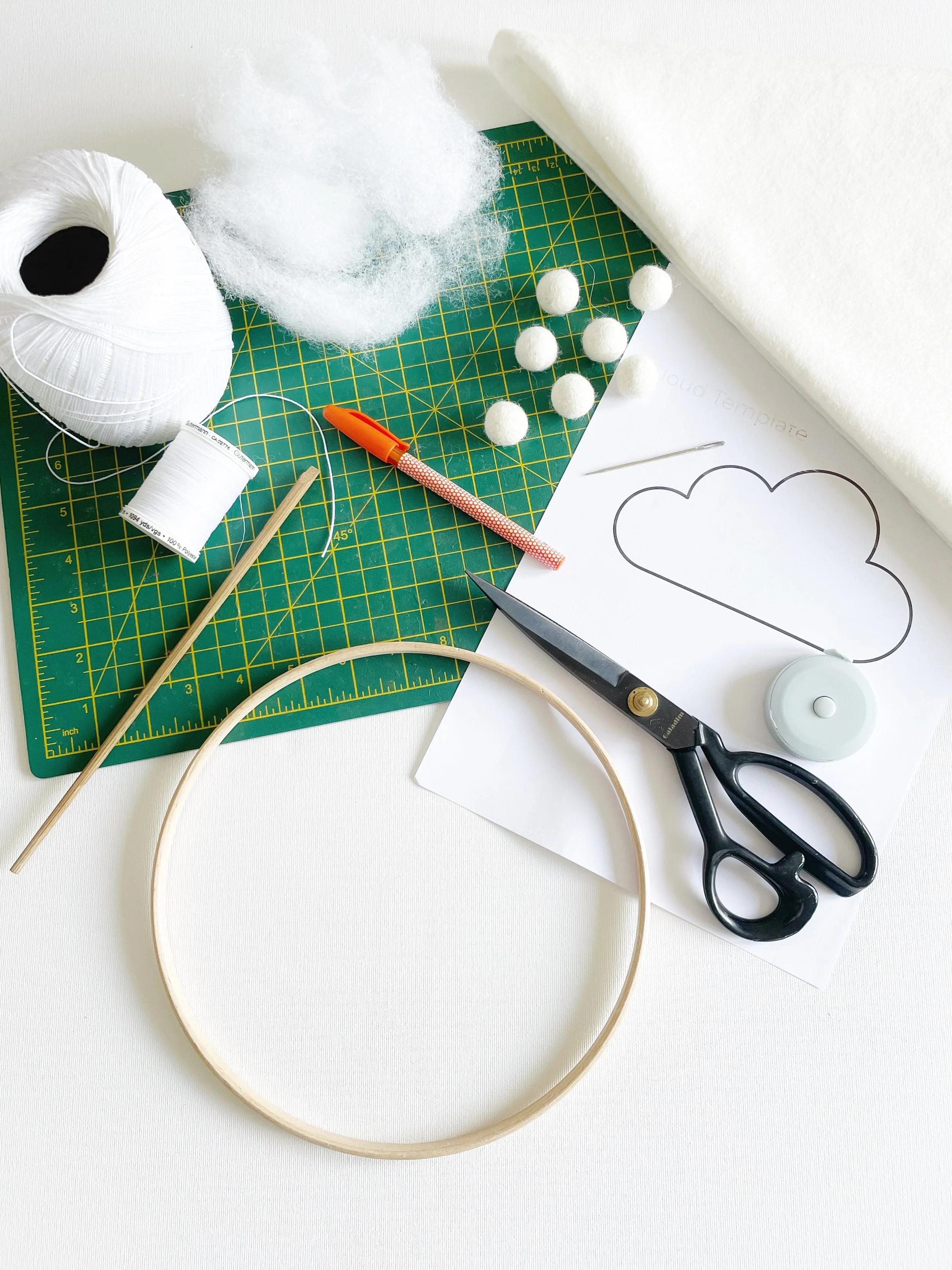 I’ve created my DIY baby mobile using a soft ivory felt, but feel free to mix it up with other colours if you like. You could keep the ivory clouds and add a few colorful felt balls or even some sweet little felt stars for a bit of extra magic.