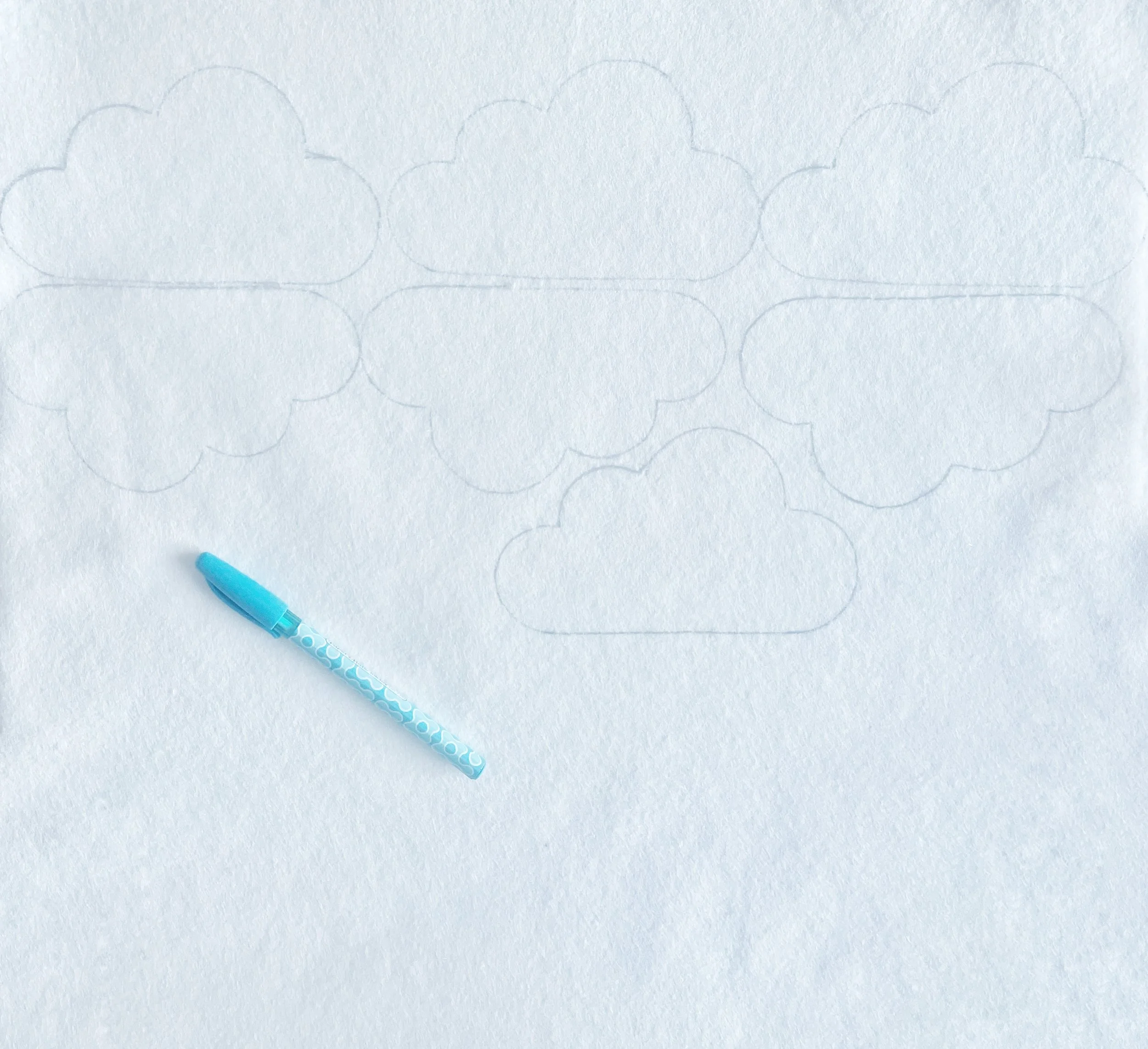 You will need to draw seven clouds onto the fabric. Draw them pretty close together so no felt is wasted.