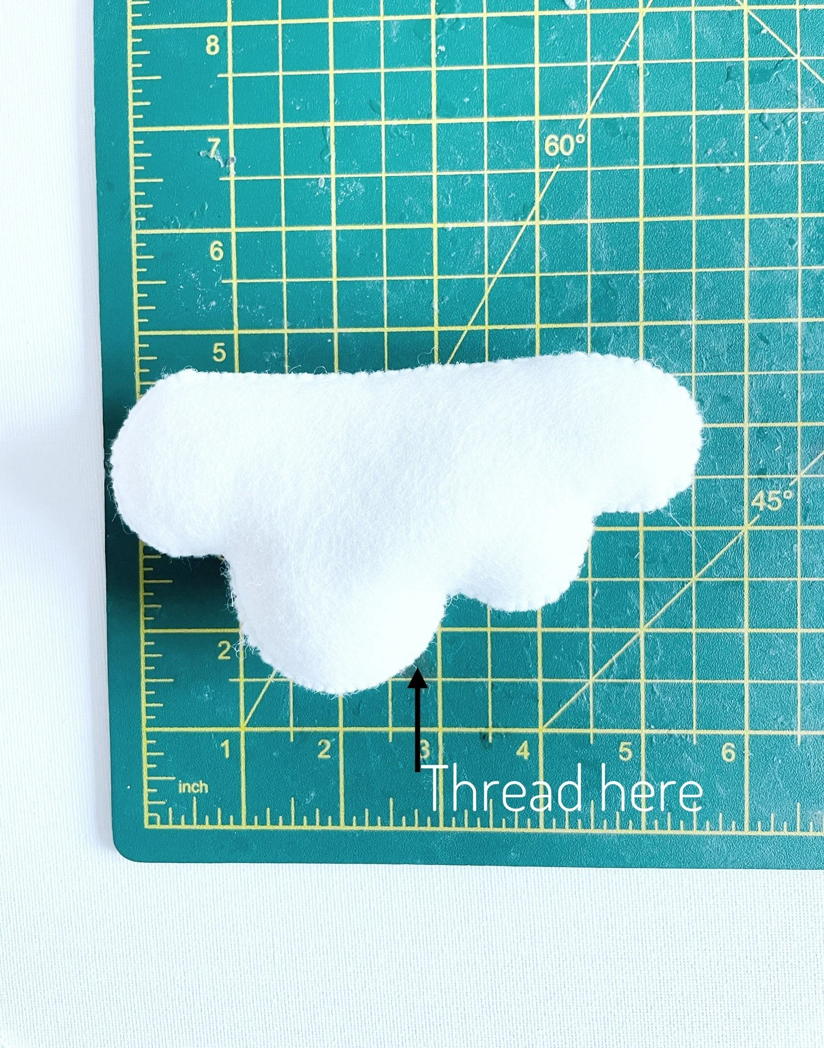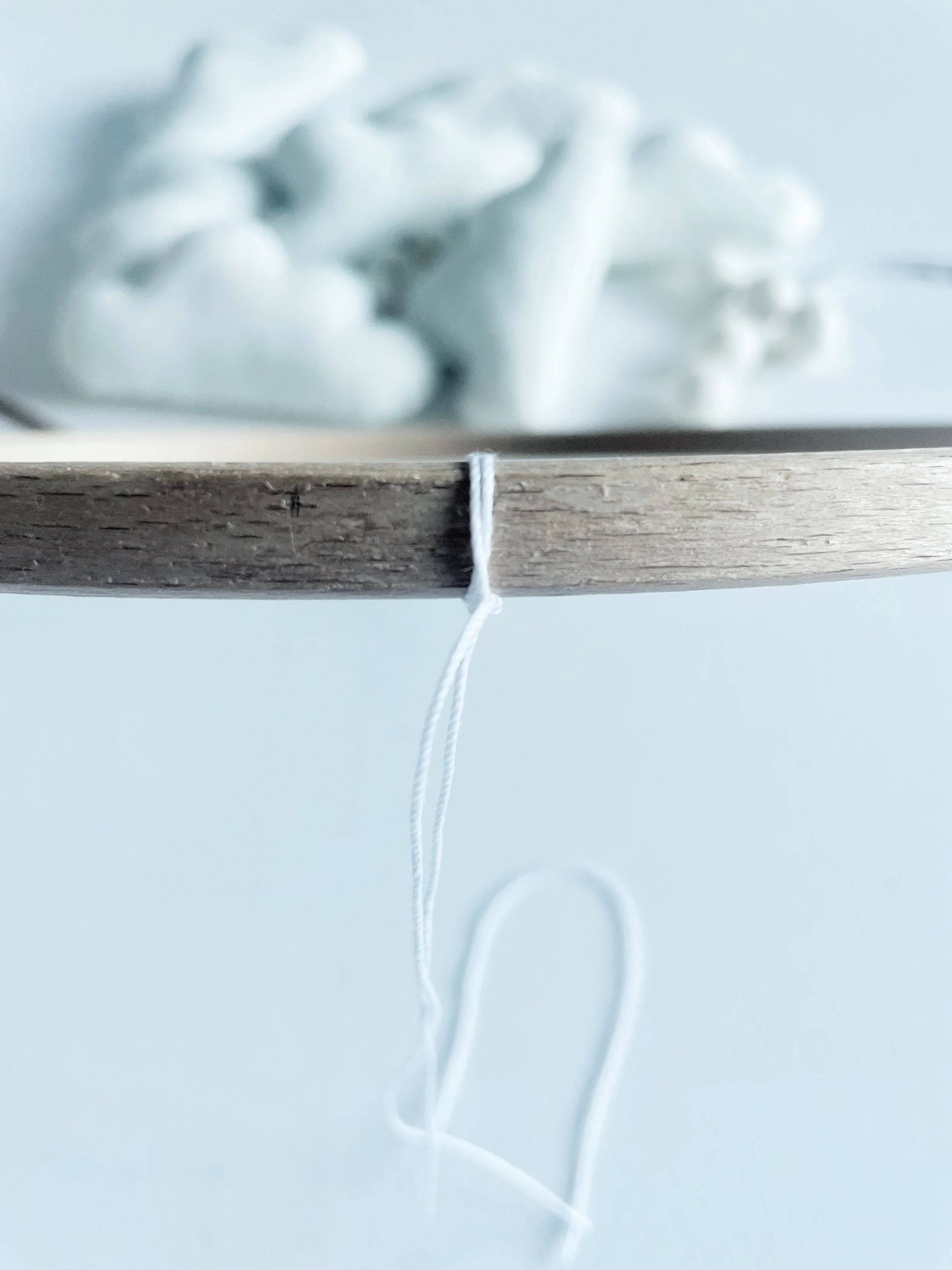 It’s super important to measure the centre point of each cloud and thread them at the exact (or close enough) spot. Otherwise, you’ll end up with clouds that just don’t hang right.