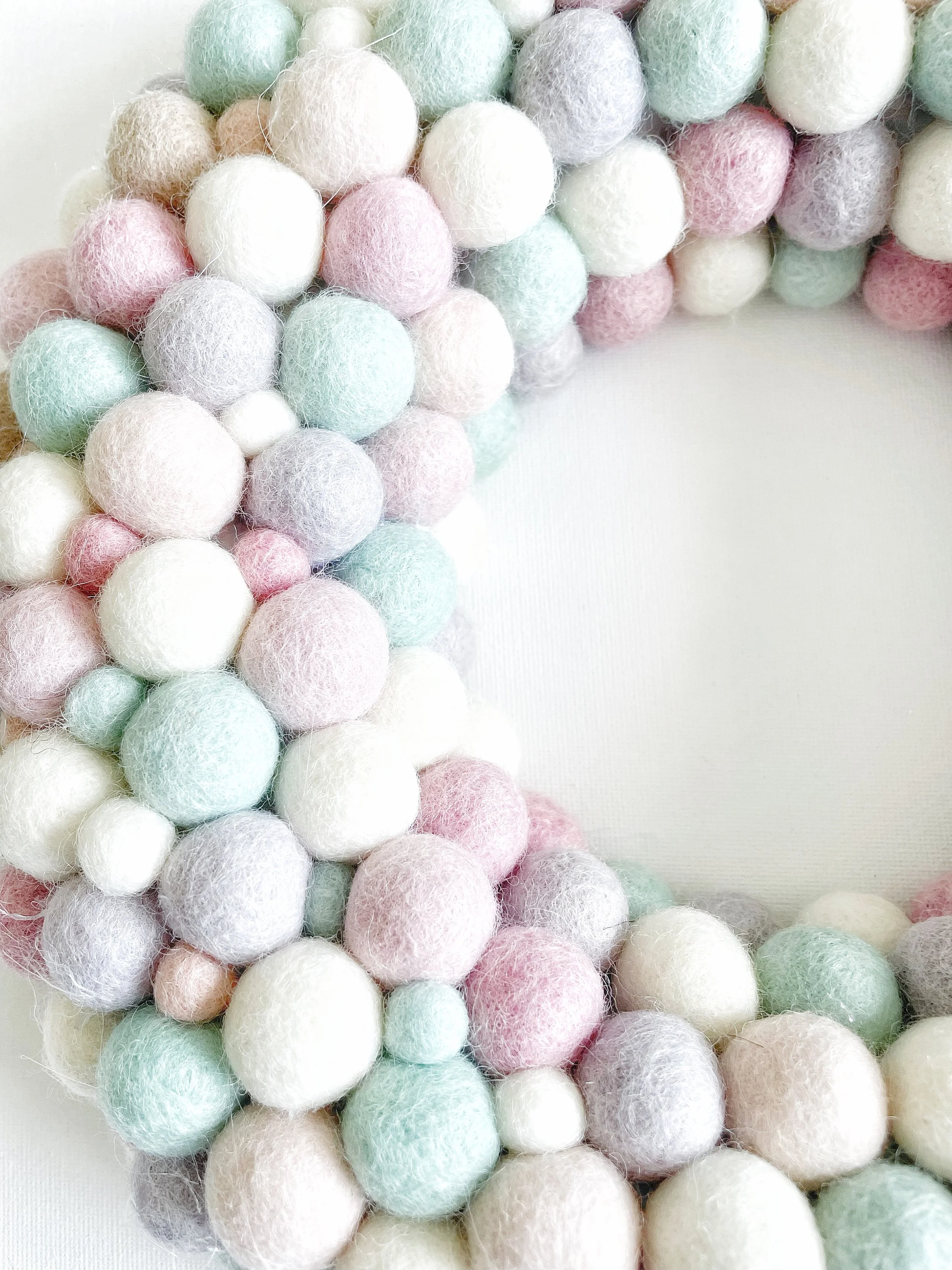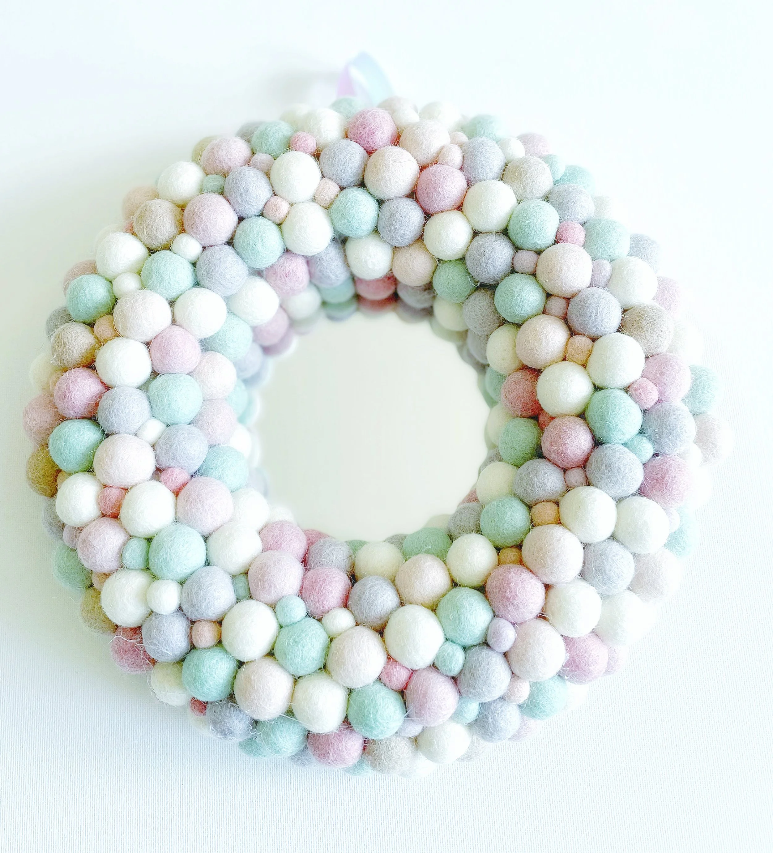 Felt ball wreaths are soft, plush, and add a lovely pop of charm to any space. They’re super simple to make, which makes them a perfect project for beginners.