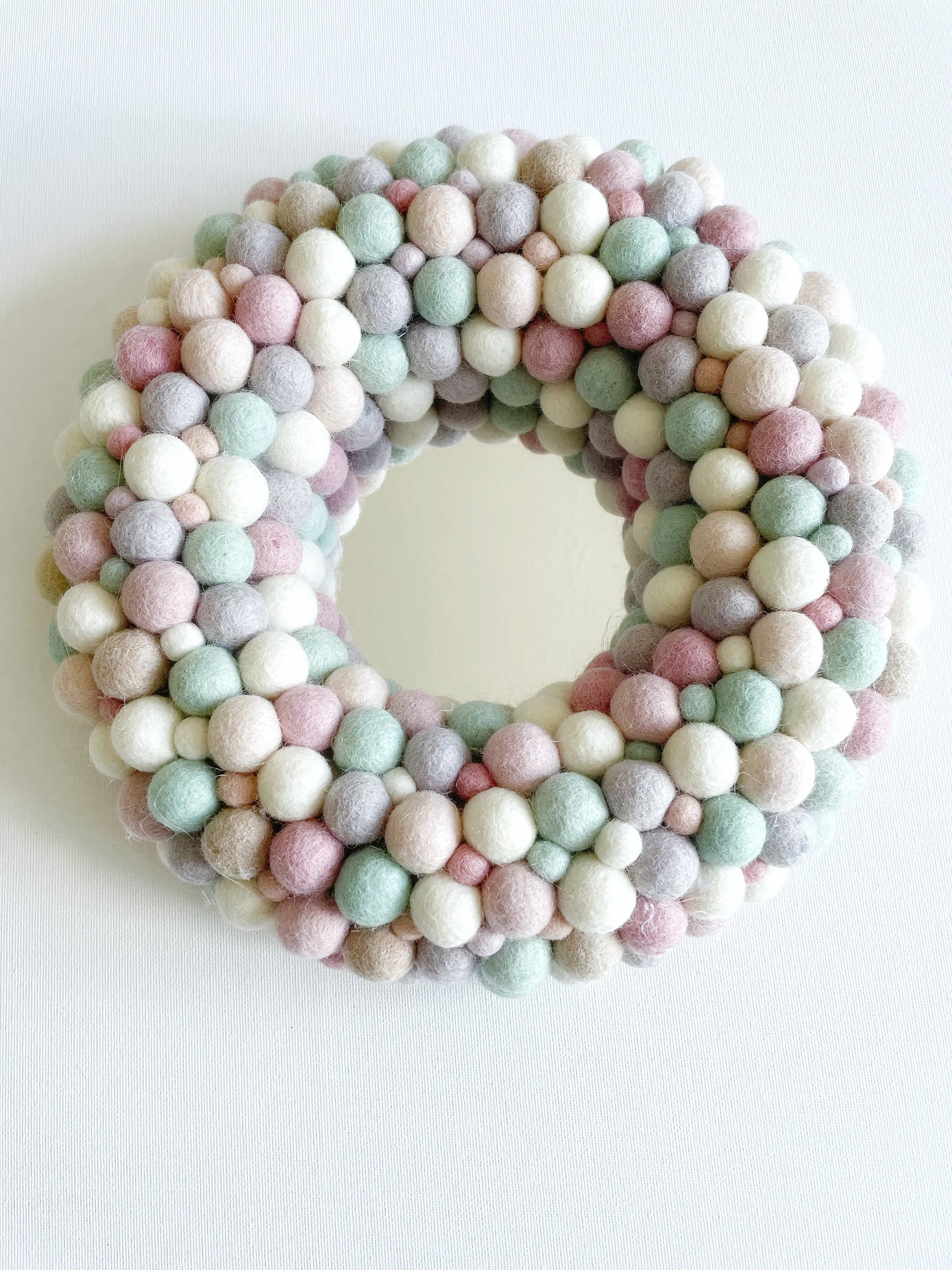 This DIY felt ball wreath tutorial is a bit of a two-in-one! You can choose to make a wreath with a mirror in the centre for a fun twist, or keep it simple and go with a classic felt ball wreath it’s totally up to you.