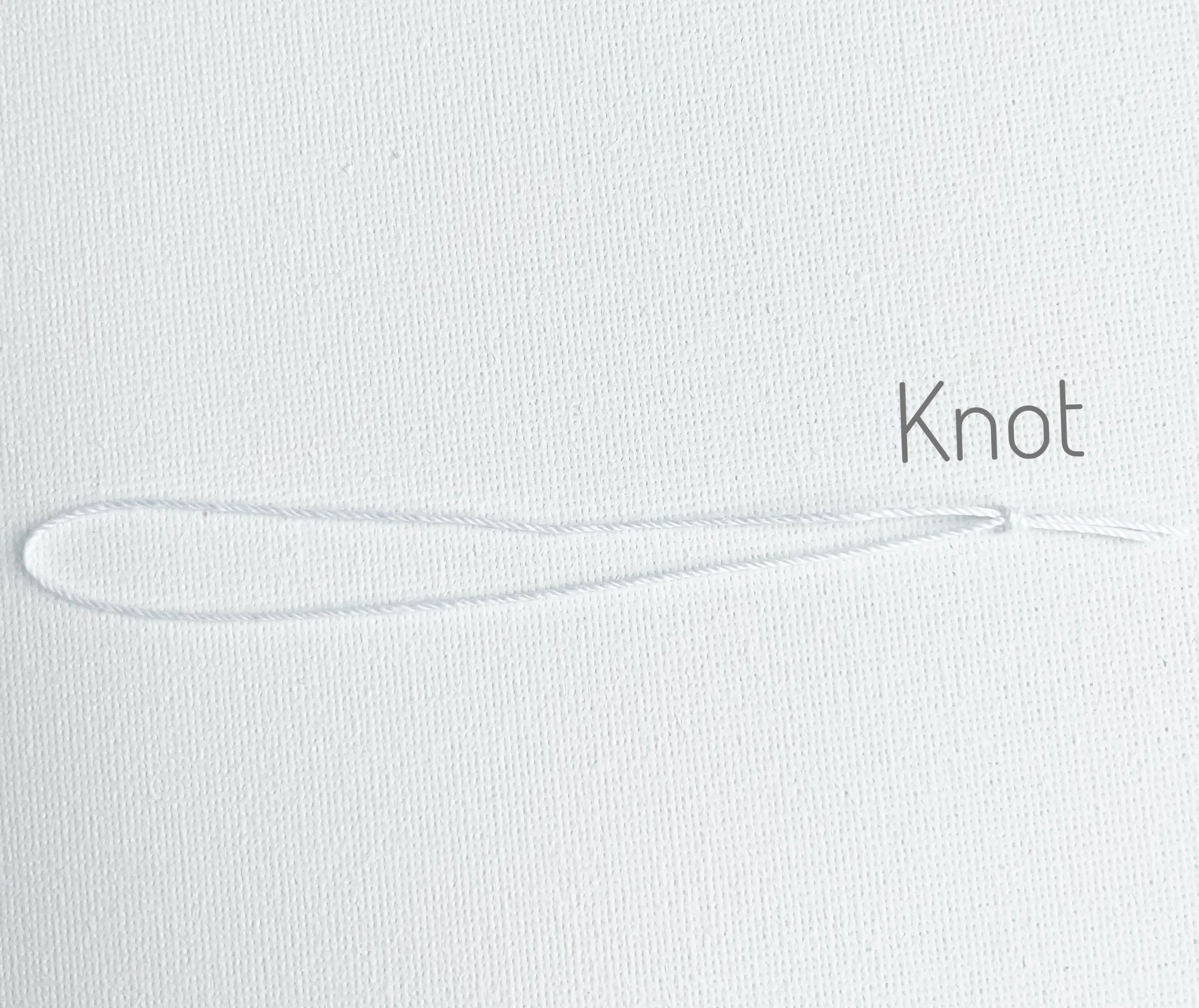 Take a peek at the image above, you’ll notice the thread is very fine, but if you look near the word “thread” you can see exactly where they’re tied.