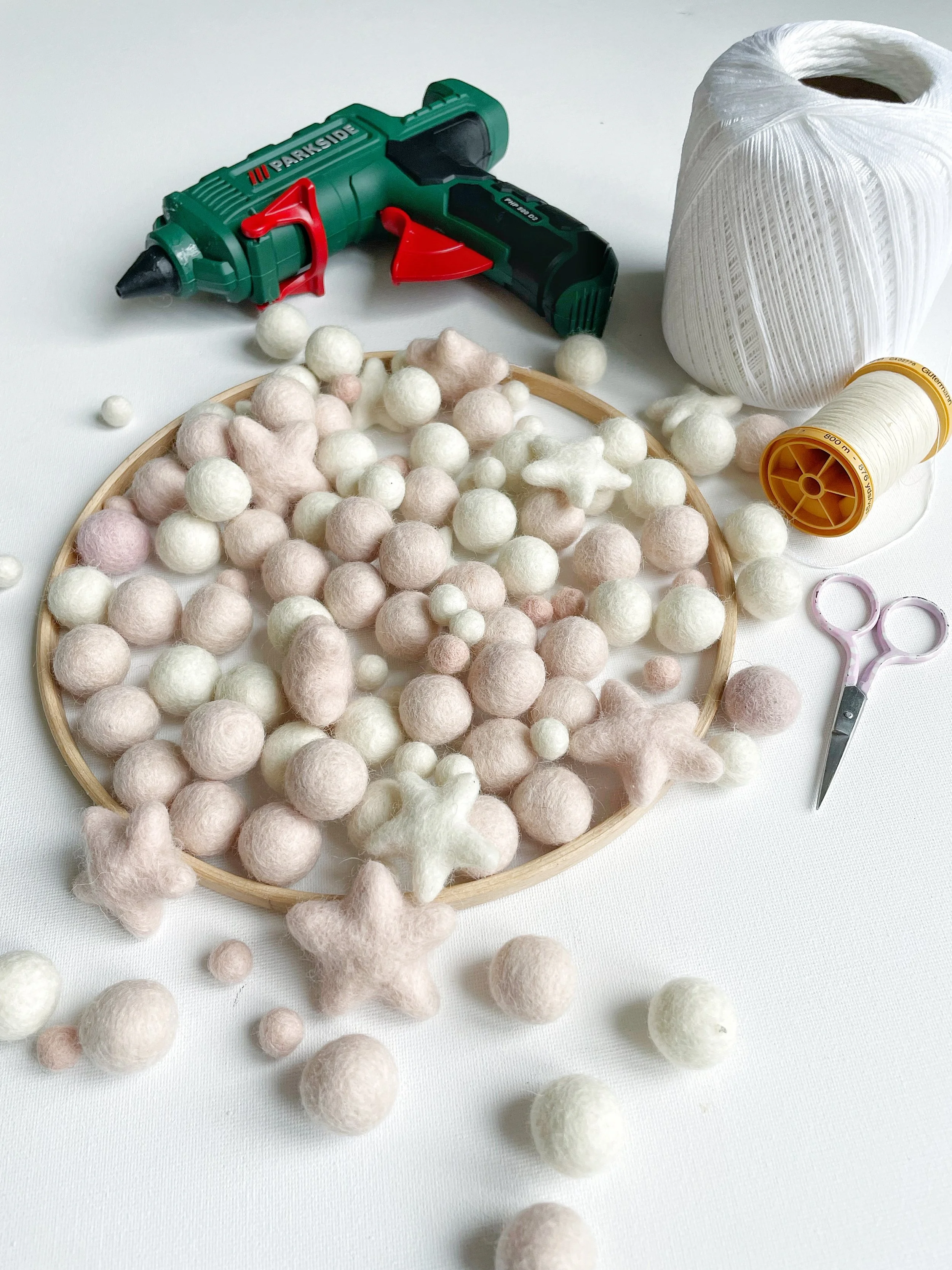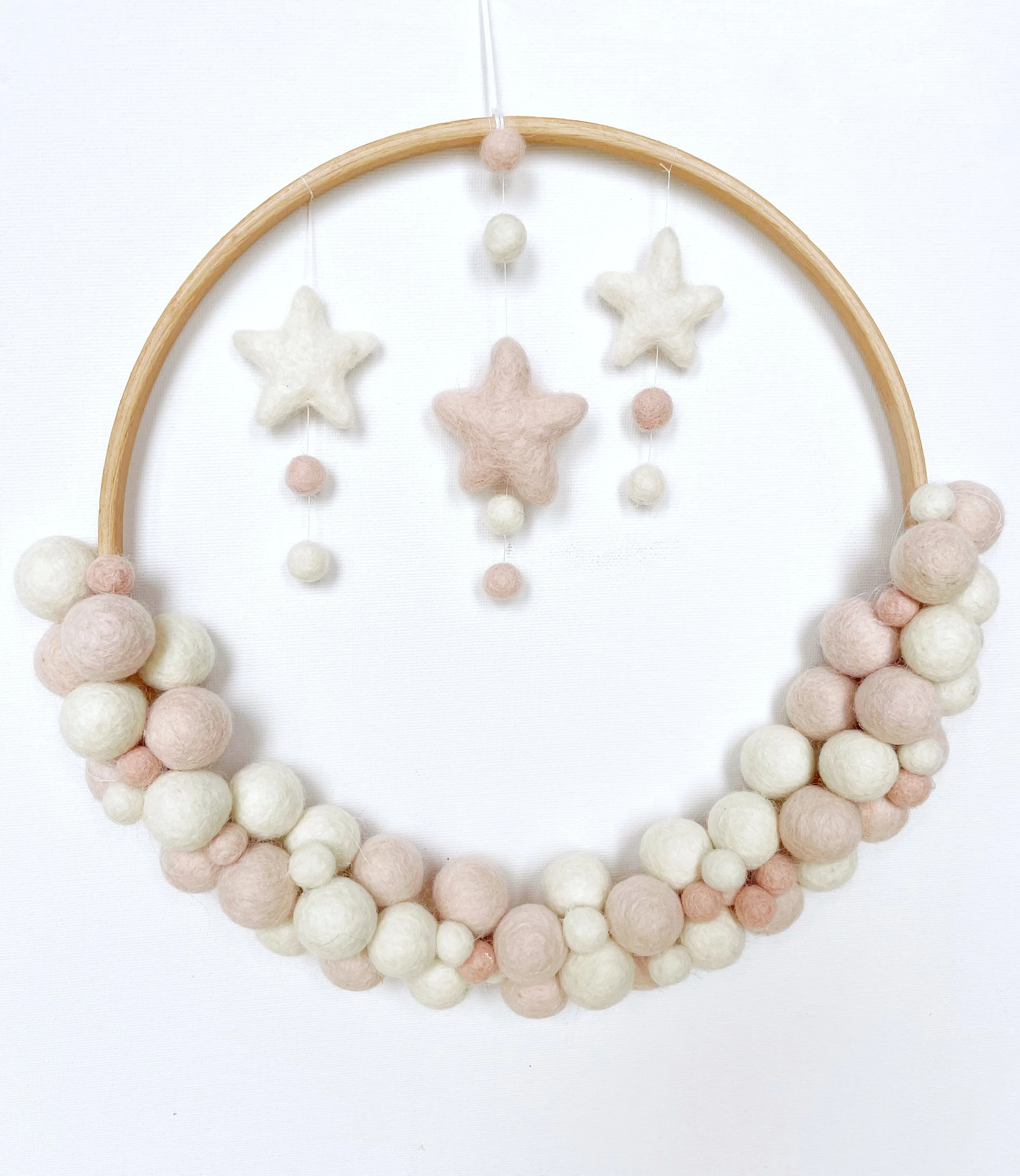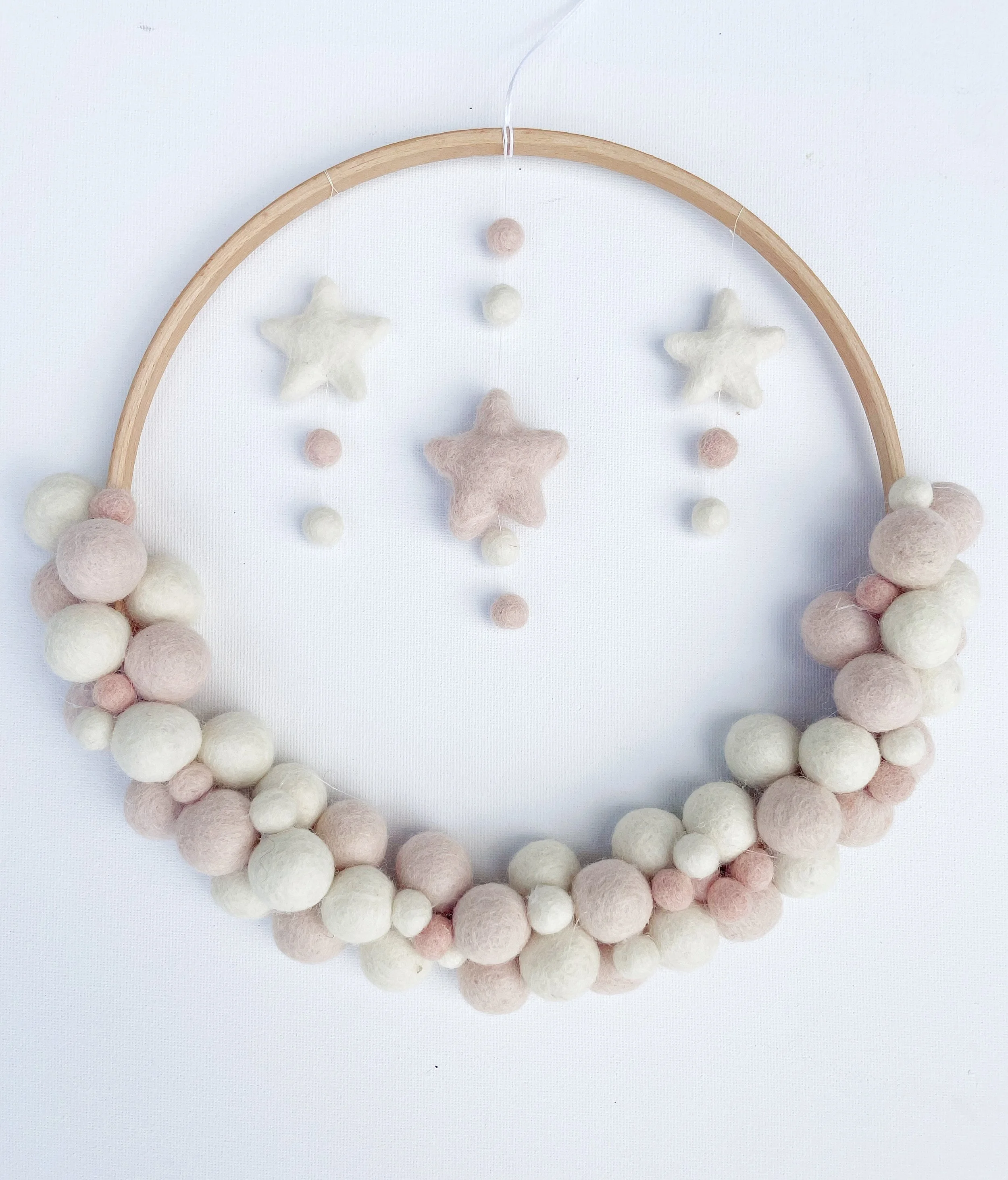 For my DIY dream catcher, I chose pastel pink and ivory felt balls to create a soft, marshmallowy look. But the beauty is, you can make it completely your own, try dreamy pastels, bold brights for a pop of fun, or calming neutrals for a cosy, natural feel.